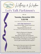 Wellness & Wisdom at Clover Ridge Place ~ Let's Talk Parkinson’s Disease